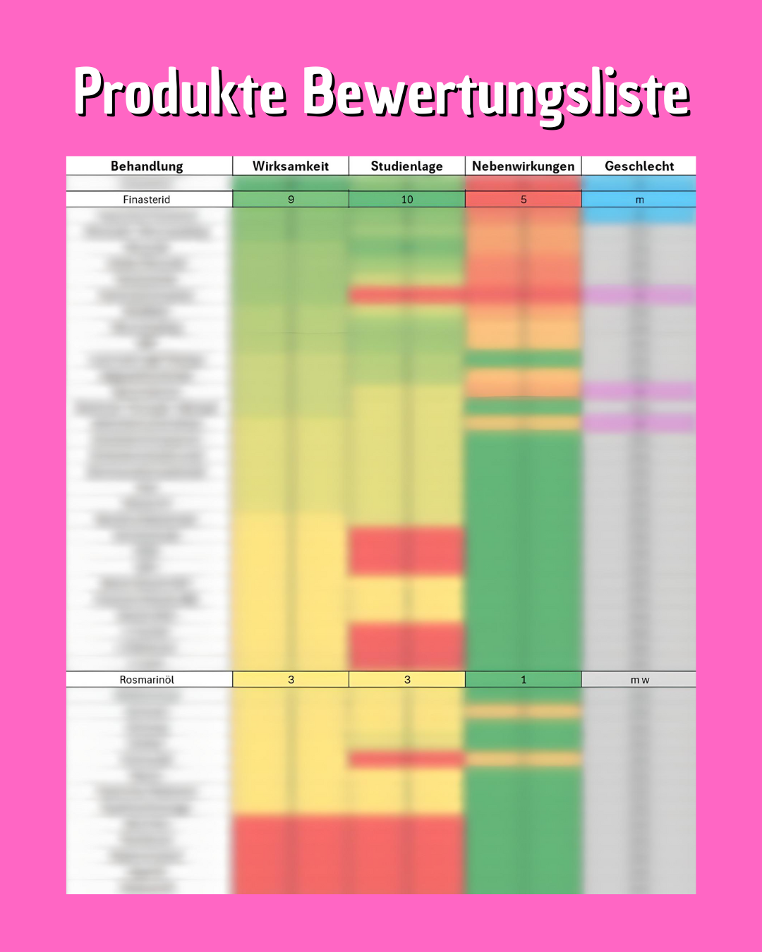 Der Fokus liegt dieses Kurses liegt auf Produkten und Methoden, die laut Studienlage die höchste Wirksamkeit bei Haarausfall haben. Wenn du in den nächsten 6 bis 12 Monaten also dein größtmögliches Potenzial aus deiner Haarsituation herausholen möchtest, ist der Kurs genau richtig für dich.